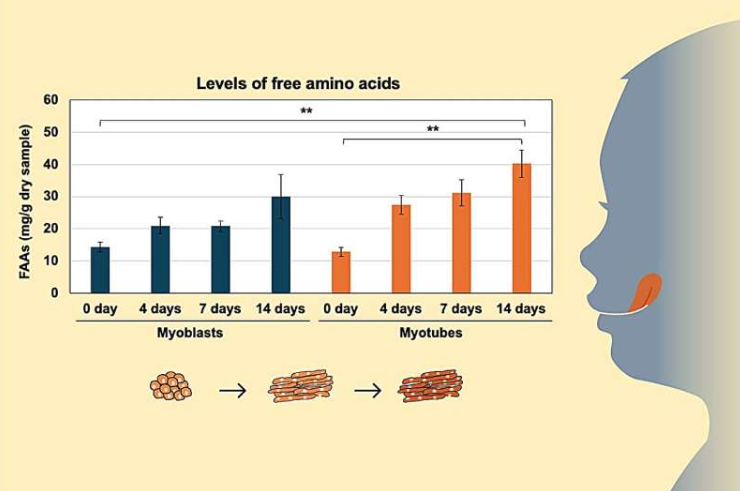 Liquid chromatography was used to identify and quantify free amino acids in the aged and non-aged cultured meat cells. The researchers found that the levels of free amino acids increased significantly during the aging of bovine cells, with some notable differences compared with conventional meat.